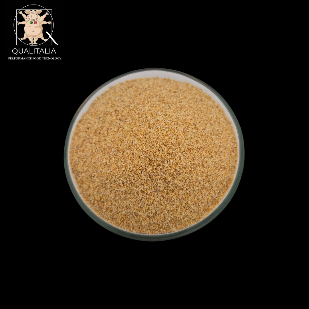 L’Aglio in Granuli è ottenuto dall’essiccazione e macinazione di bulbi selezionati e offre una consistenza perfetta per distribuire il sapore in modo uniforme.