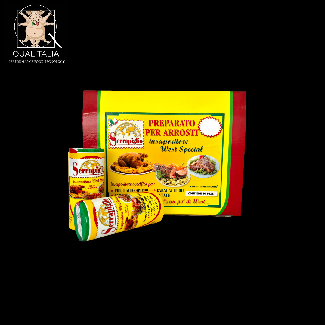Miscela bilanciata di spezie e aromi particolarmente indicato per polli allo spiedo, carne alla brace e patate al forno.