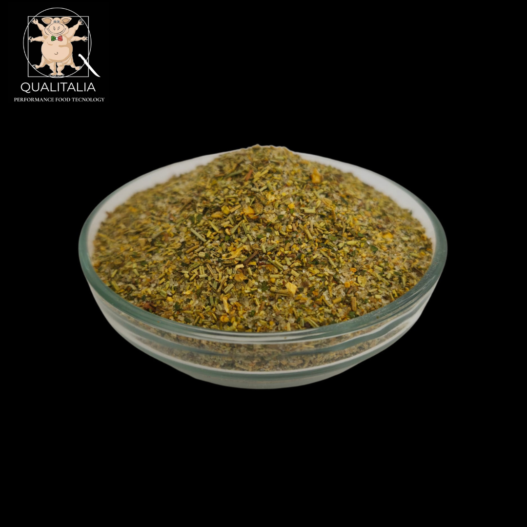 Miscela bilanciata di spezie e aromi particolarmente indicato per polli allo spiedo, carne alla brace e patate al forno.